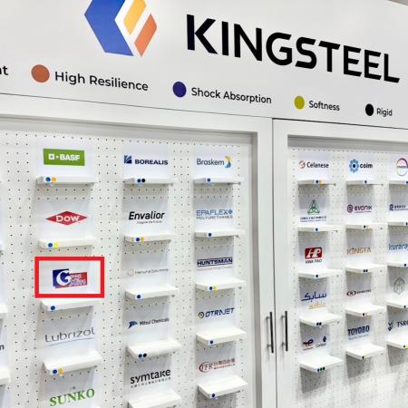 2025年於德國杜塞道夫舉行的國際橡塑展中,鉅鋼機械除了展示設備外也一併展出40種可選用材料; 其中就包括廣鑫自行開發的超臨界EVA材料; 廣鑫致力於複合材料研究並將其技術應用於物理發泡製程,實現物理發泡並可全回收EVA材料技術。