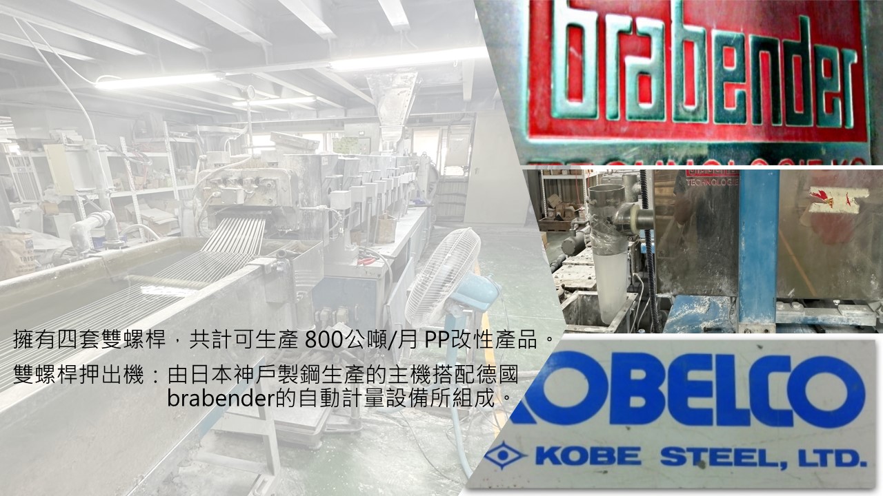 生產低煙無鹵及阻燃TPU線材的設備有萬馬力搭配單螺桿押出機及利拿搭配單螺桿押出機,兩種生產製程設備,總產能為每月250公噸。